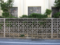 幾何学的な模様のブロック塀。コンクリート住宅が多い沖縄では、この…
